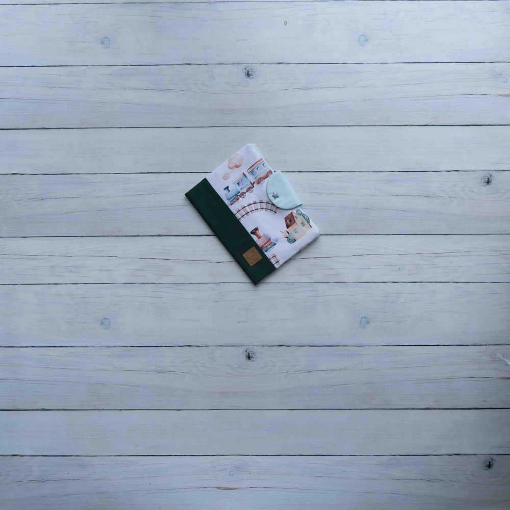 Egészségügyi kiskönyv borìtò – Smaragdzöld, vonatos