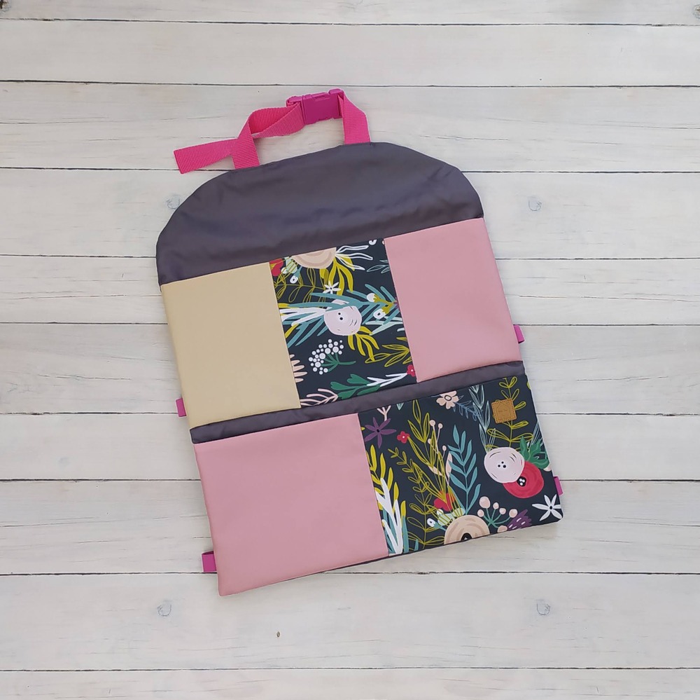 Ideális az autóba, az első ülések védelmére. Teljesen vízhatlan, így a sár is könnyen letörölhető egy nedves ronggyal. 5 zsebbe mindenféle játék, ennivaló, zsepi, stb. pakolható 🙂 A fejtámlánál műanyag tuk csatos 100% poliészter heveder pánt. A háttámlához 2 gumipánt rögzíti, így szépen rásimul az ülésre, a gyerek a lábát alá nem tudja bújtatni 🙂